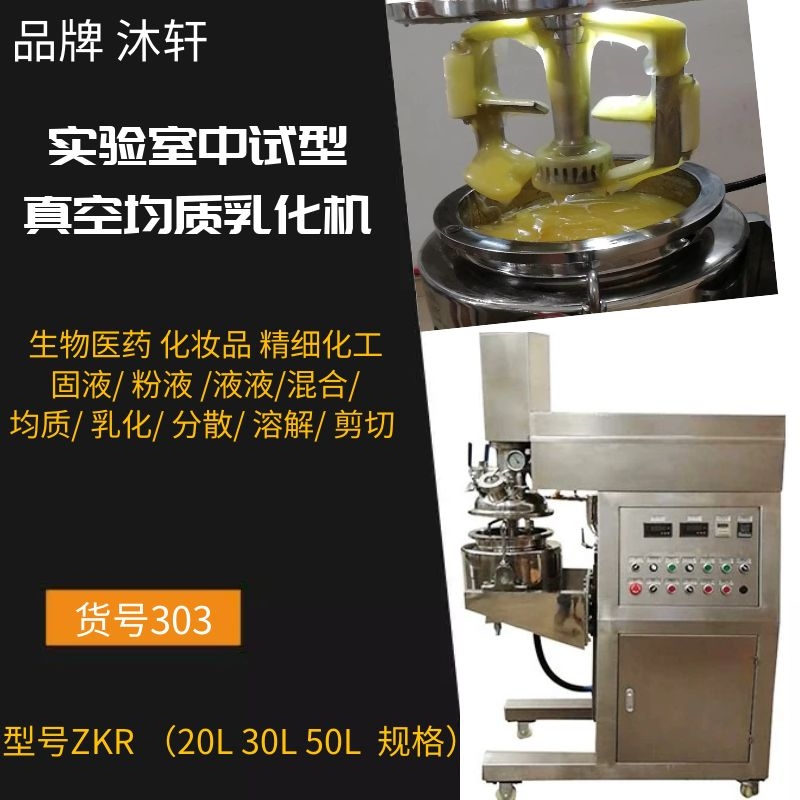 本机特征:20L 30L 50L 实验室真空乳化机具有快速均质乳化效果好,加热冷却和真空脱气,热效率高,电气控制可靠,运行稳定,操作维修方便,劳动强度低等功能和优点,是膏、霜、浓酱和蜜类等化妆品的理想生产设备,同时也是适用于制药、食品、精细化工等高粘度物料行业中的实验及生产.